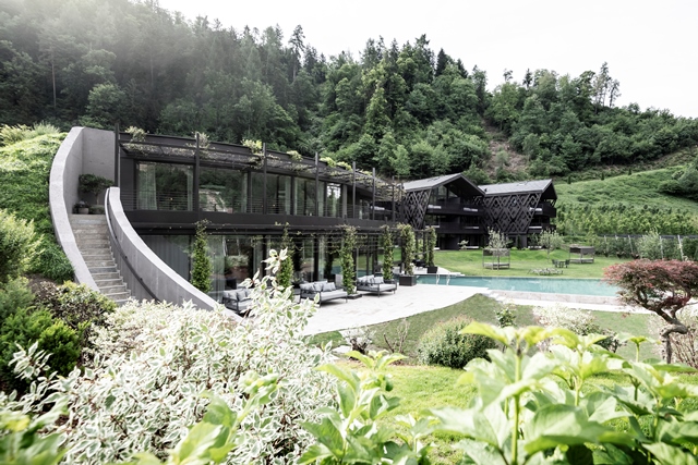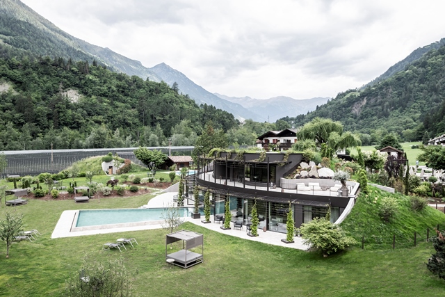 The newly opened wellness facility – the hotel’s new centrepiece – has no Northside facade, instead, it blends into a natural green slope so that the building can hardly be seen. The