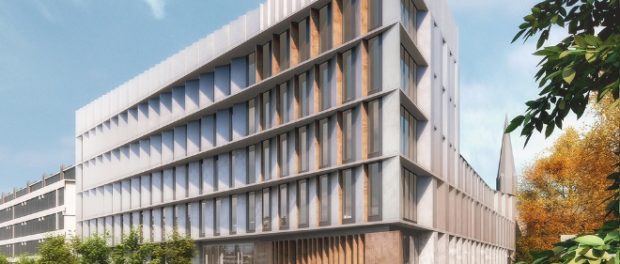 The seven-storey building will include a mix of laboratories, offices, university staff space, atrium, lecture theatres and a café accessible to the public. It is designed to EPC A and Breeam Excellent standards.