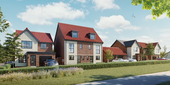 The new images show street scenes and house types that are planned – a mix of 276 properties for private sale by Bellway and Bellway’s Ashberry Homes brand, alongside 92 affordable homes. All of the homes will be heated by energy-efficient air source heat pumps.