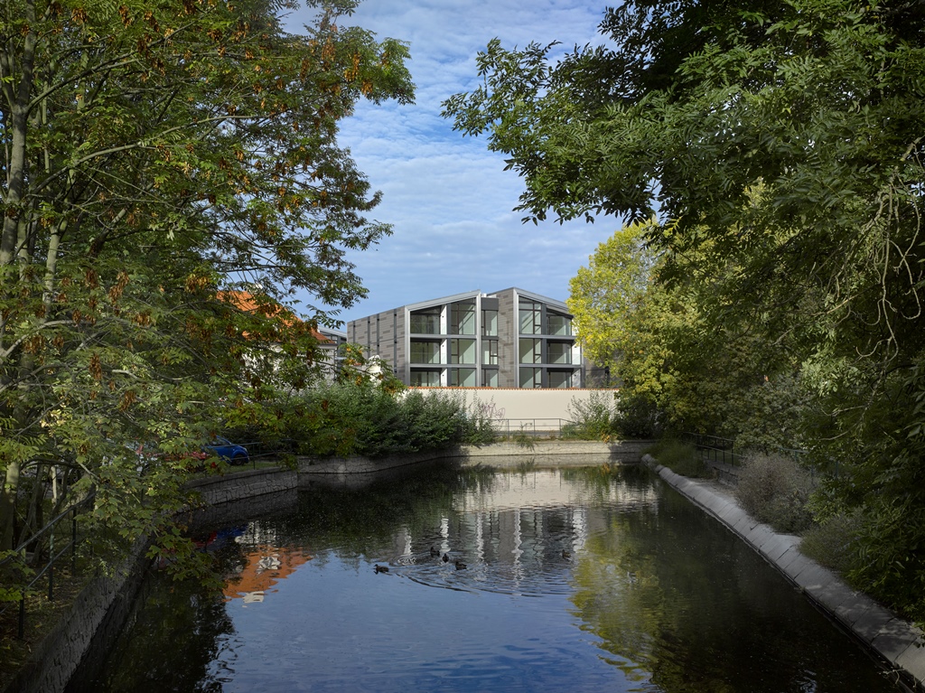 The site – originally a courtyard to an historic manor dating from the 1430s – has been transformed into a distinctive residential enclave, bounded by high stone walls. Within the grounds of the original manor house, Bogle Architects has designed five new ‘villas’ accommodating 59 luxury residential units. The villas are arranged around a landscaped courtyard and offer a modern take on the historical pitched roof motif prevalent in this historic setting. The villas provide a contemporary counterpoint to the existing baroque building – refurbished by the practice – and include underground parking. The complex also offers a range of sports and leisure facilities, including tennis courts, a fitness club and a golf club.