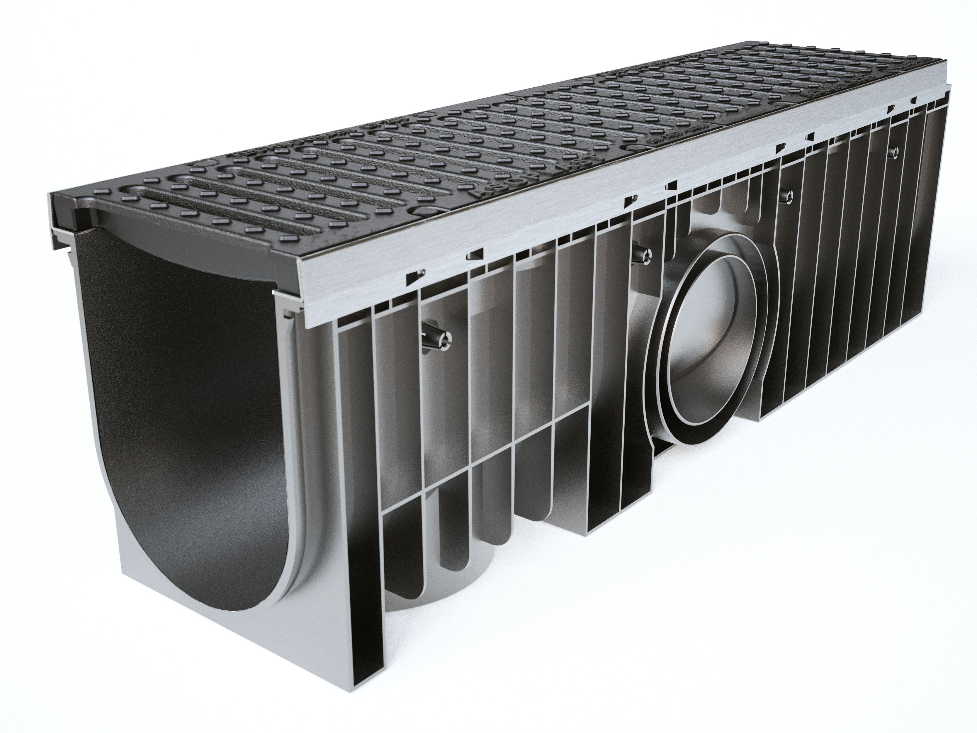 Technodrain® incorporates many other benefits. Its robust design adds to its sustainable life, whilst installation is eased with tongue and groove joints enabling the connection of multiple channels with a ready-mounted grate. Its preformed lateral and vertical channel outlets also provide quick and easy connection to discharge pipes.