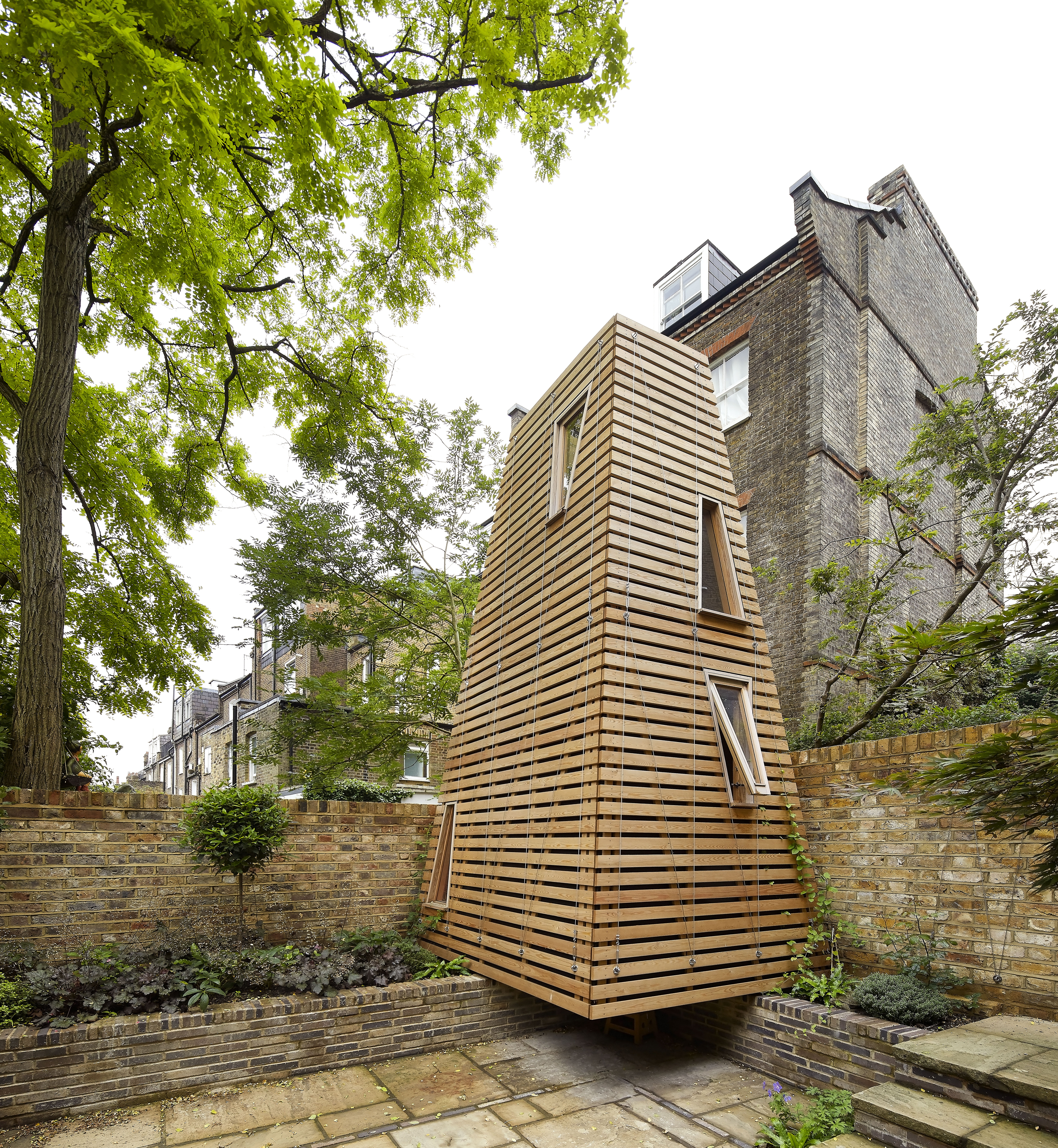 Due to its unusual height and form for a rear garden, planning permission was sought and achieved with the only condition being that the structure would need to be disassembled and removed when the property was sold.