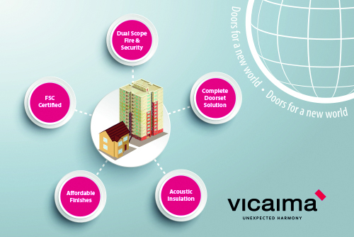 Among the many challenges presented in the social housing market and indeed elsewhere, is a lack of skilled labour and for that matter resources in general, when it comes to the installation of doors on site. This is often compounded by the reluctance of many to move beyond the somewhat antiquated 20th century practice of face finishing doors in situ, with its inherent lack of continuity, added expense and drain on time. Fortunately, Vicaima’s extensive range of cost effective, designer led, fully finished products alleviate this concern. However, it does not stop there. With the supply of complete doorsets (door and frame), which not only speed up the installation time; but also ensure compliance with appropriate regulations, insuring much of the uncertainty is removed.