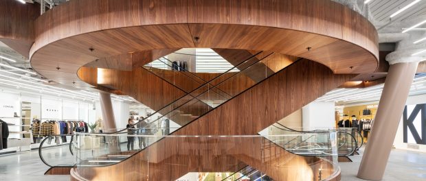 The historic Berlin department store Kaufhaus des Westens (KaDeWe) opened the doors to the first quadrant of the masterplan designed by OMA. A concentric void spanning six floors holds a series of wood-clad escalators. At the base, in extension of the Tauentzienstraße main entrance, the void serves both as a retail and event space. Outside, a two-story-high shop window for analogue and digital presentations has been introduced on the corner of the Tauentzienstraße and Passauer Straße.