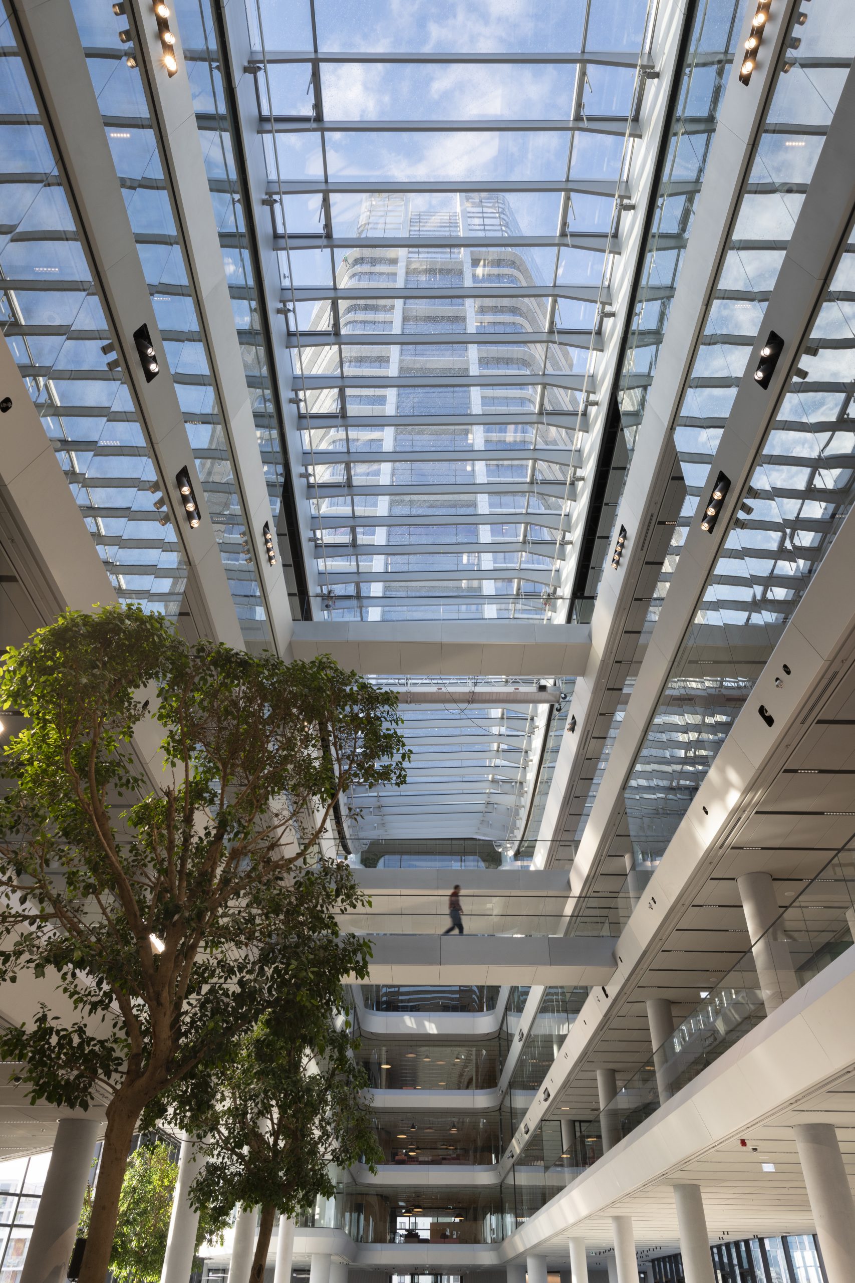 The 28-storey building’s lower floors house restaurants, a gym, conference centre and a whole host of other facilities for staff, while the flexible offices spaces are on the upper levels. Greenery travels through the heart of the building, from the central atrium to the rooftop, bringing nature closer to the workspace. It also acts as a social catalyst, creating spaces for collaboration, relaxation and inspiration. The offset service cores create large flexible areas that encourage collaborative patterns of working. Using cutting edge technology to control light levels, temperature and views these workspaces are finely calibrated to create the perfect working environment, a light filled inspirational space for people to work in. All occupants have a direct connection to the external environment providing daylight and views.