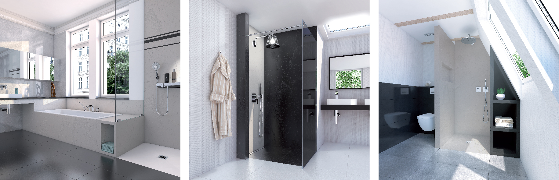 From tile backer boards in standard or flexible formats or pre-formed cladding solutions for baths and pipes, through shower elements in countless sizes and many different designs or a multitude of practical elements such as ready-to-fit partitions, niches or benches, to wellness elements such as steam baths, loungers, creative wall solutions or ready-to-fit bathroom furniture – every wedi product is designed to interlock with one another including countless accessories such as sealing and decoupling membranes, acoustic products or vapour solutions for example, providing a full system solution from one manufacturer.