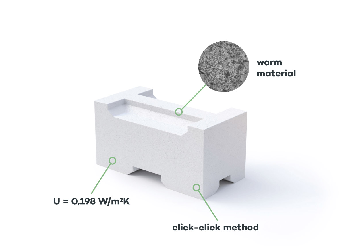 • High thermal properties (U-value =0,198W/m2K for a single block)