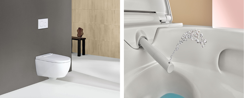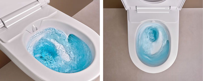 The combination of the innovative TurboFlush technology and the asymmetrical inner geometry of the rimless WC ceramic appliance patented by Geberit ensures that the flushing-out process is particularly thorough and quiet without compromising on the highest standard of hygiene. A single, lateral flush opening is all that is needed for this – and it is also very easy to clean.