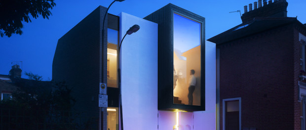 On the residential side is Number 23, a home designed, built and lived in by its architect Matt White. The full height box window on the front of the property was treated with Intelligent Glass switchable film to give privacy to the landing beyond.