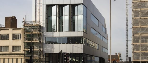 Cladding work to Stephen George + Partners’ £7.3 million office building, now named No1 Great Central Square, at the old Stibbe factory site in Leicester is nearly 90% complete.