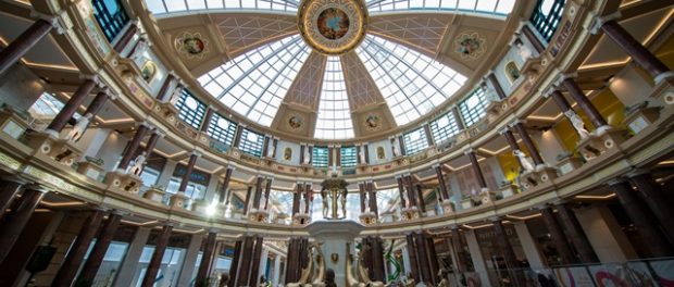 The centrepiece attraction of the Barton Square project is the new 36m diameter central domed area, for which Ryedale has created the ornate plasterwork, incorporating the high-level circular centre mural feature which is sat 30m up above the ornate fountain. Six decorative GRG petals drop into a large classical cornice detail around the dome’s base.