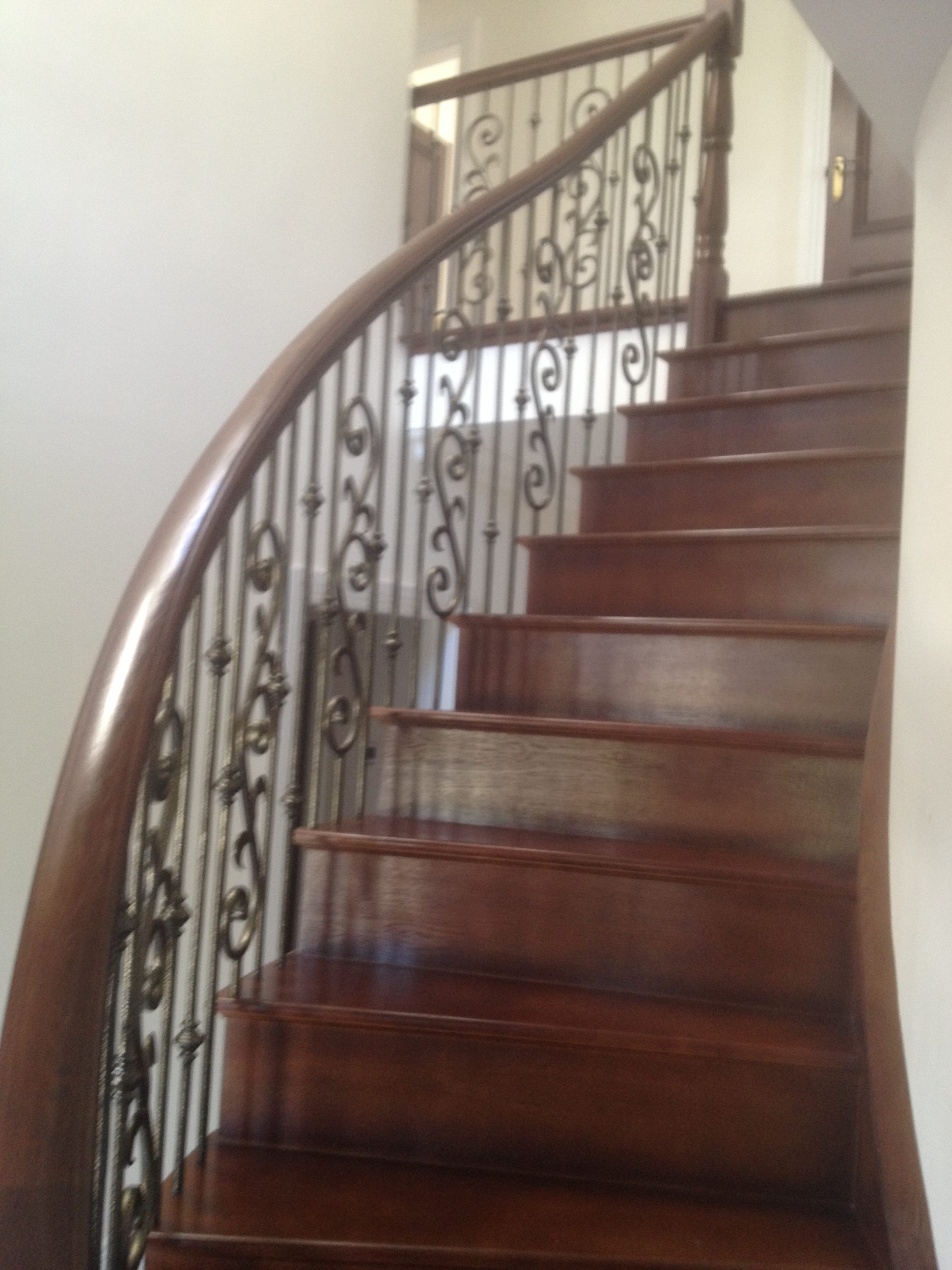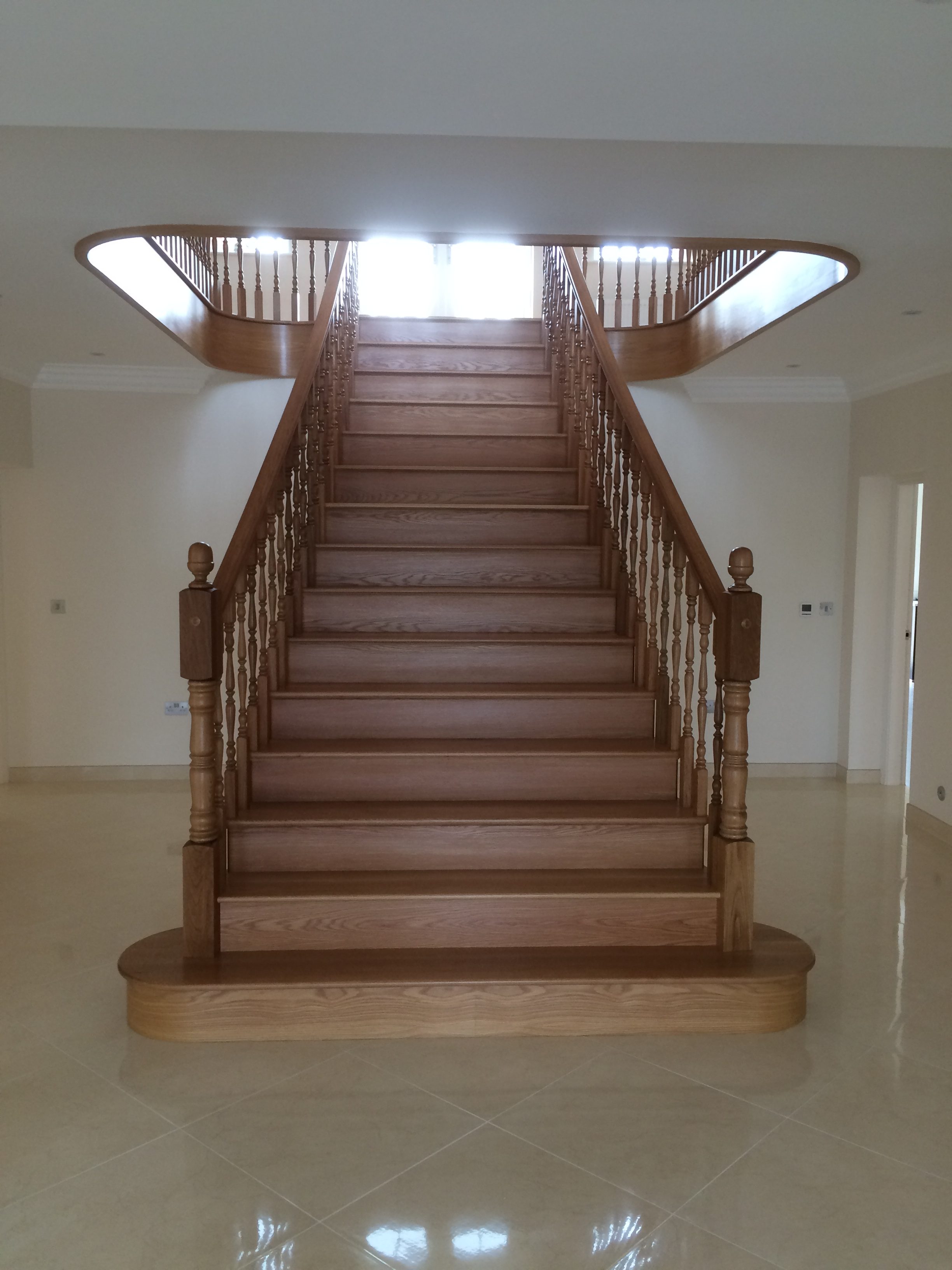 Specialising in bespoke helical and curved stairs in any hardwood, handrails to suit any profile. We can provide any shaped turned spindles finished over newel posts with veloutes. We can also provide metal spindles powder coated, chrome and turned timber to match and glass balustrading.