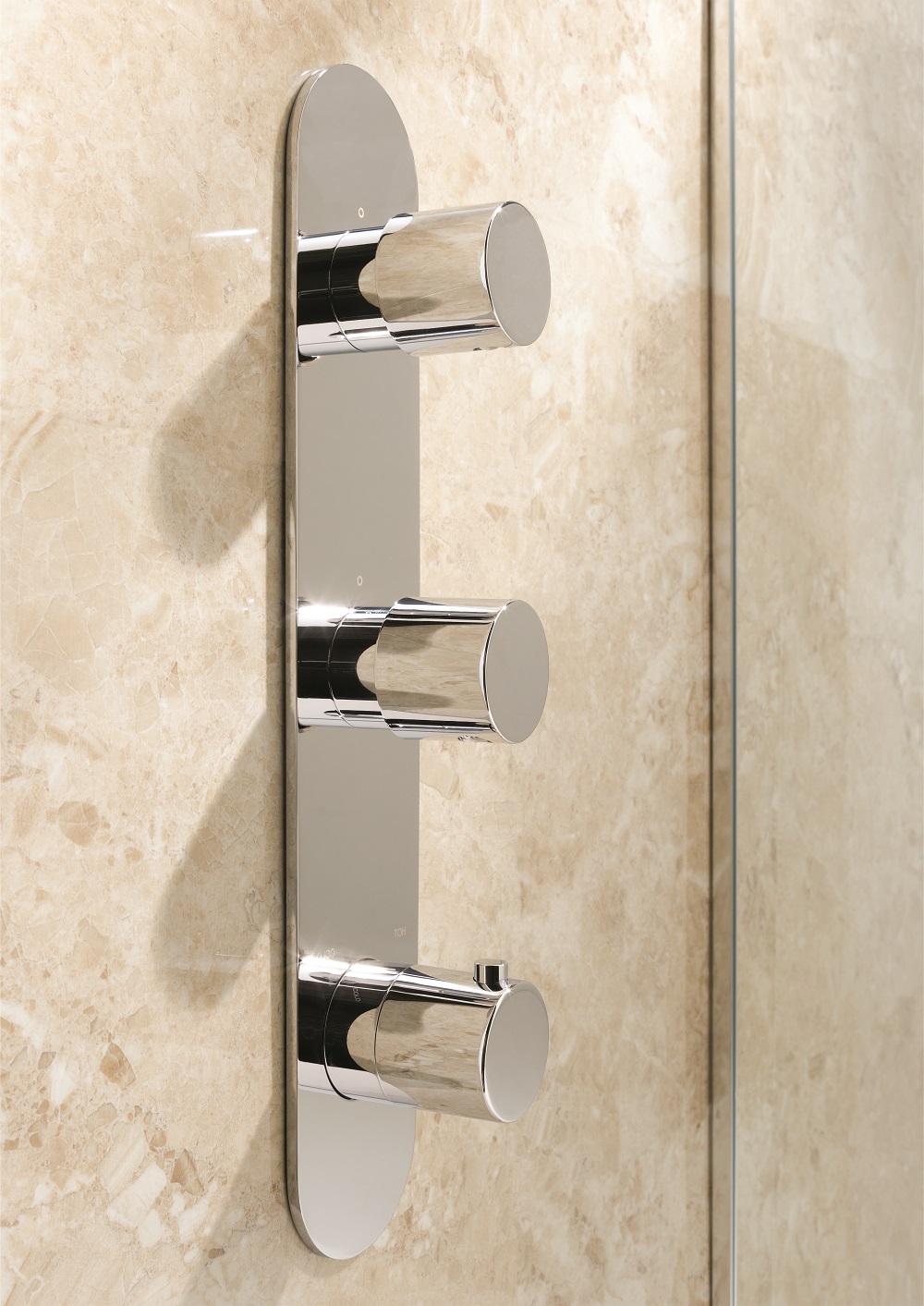 The NoCode Versobox shower valve is ideal for a coordinated bathroom look with on trend colour finishes available, and a plating service offered for more customised looks. Different handle options also add to the versatility in terms of design.  Shower valves are on an ultra slim 70mm back plate and the new Versobox Plus is even more minimalist with valves on individual trims for a stunning look.  The performance element is impressive with a 2 outlet shower valve delivering 39.6 lt/min at 3 bar water pressure.