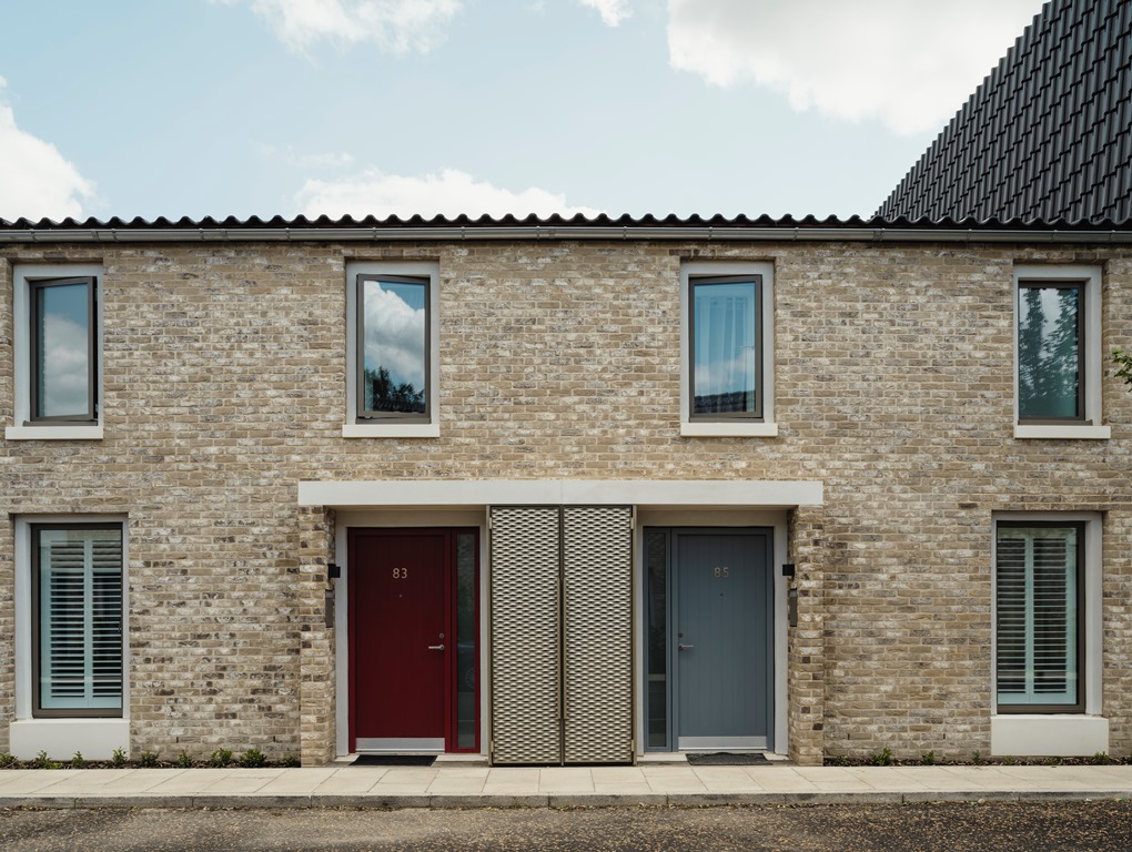 The palette of building materials references Norwich’s history, such as the glossy black roof pantiles – a nod to the city’s Dutch trading links – and the creamy clay bricks, similar to Victorian terraces nearby. To ensure the windows echoed Victorian proportions but also met ‘Passivhaus’ requirements, the architects developed a recessed feature, giving the impression of a much larger opening but limiting the amount of glass. Bespoke steel mesh garden gates and brightly coloured front doors give each home a strong sense of individuality and ownership.