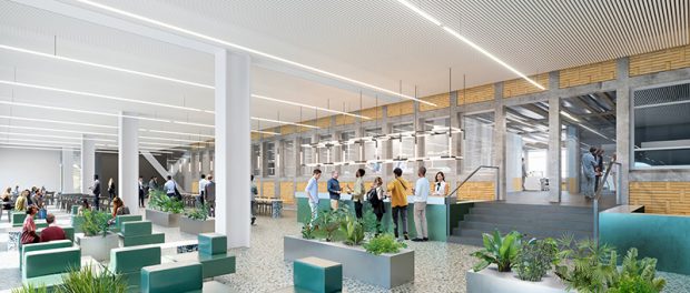 The SNCB office space is complemented by conference and training rooms, a fitness center, a restaurant, and rooftop gardens on the existing buildings.