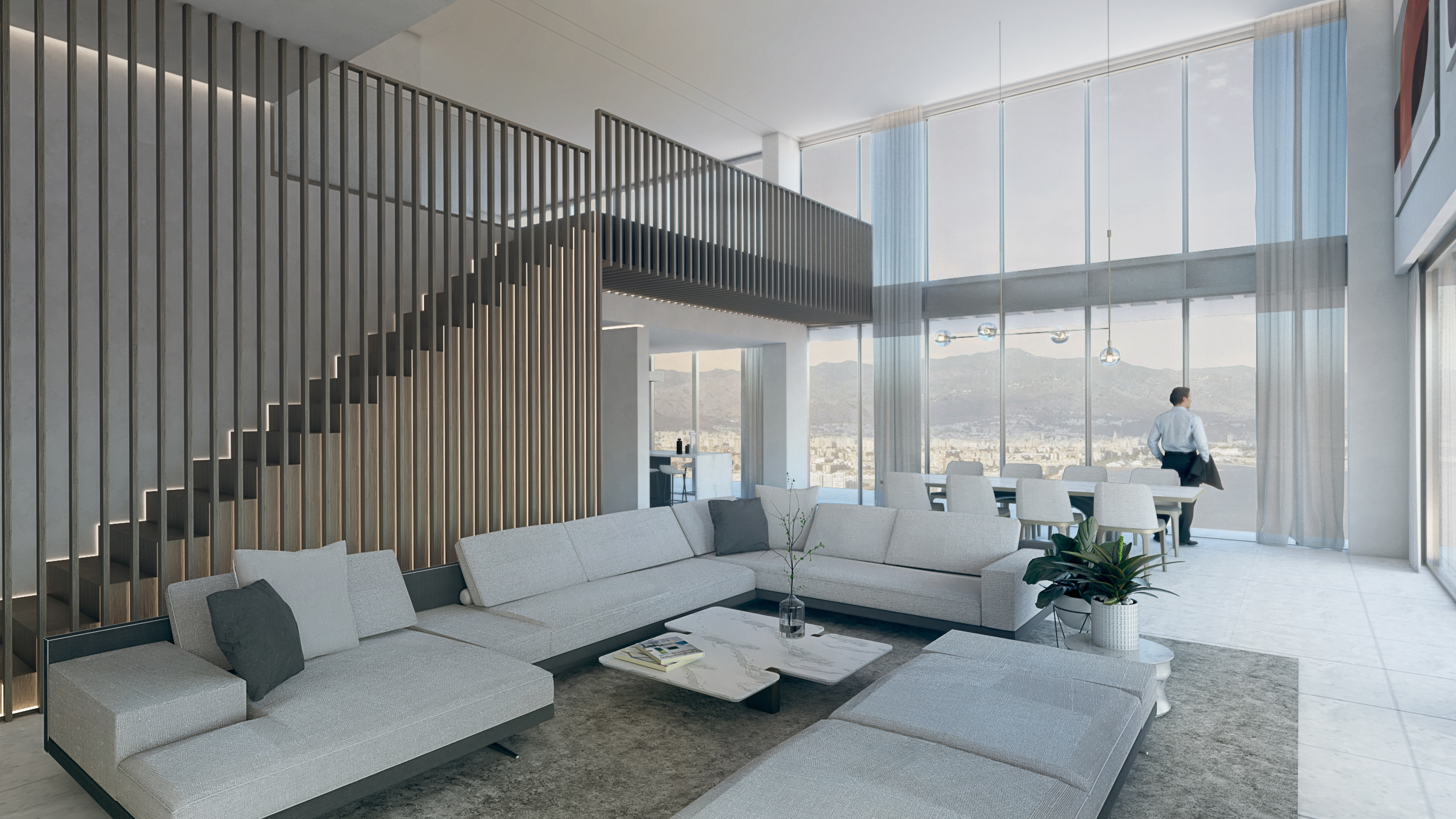 Malaga is a city with 320 days of sun a year, an asset that Picasso Towers have harnessed in both the exterior and interior of the towers via a detailed study measuring sunlight according to seasons and time frames.