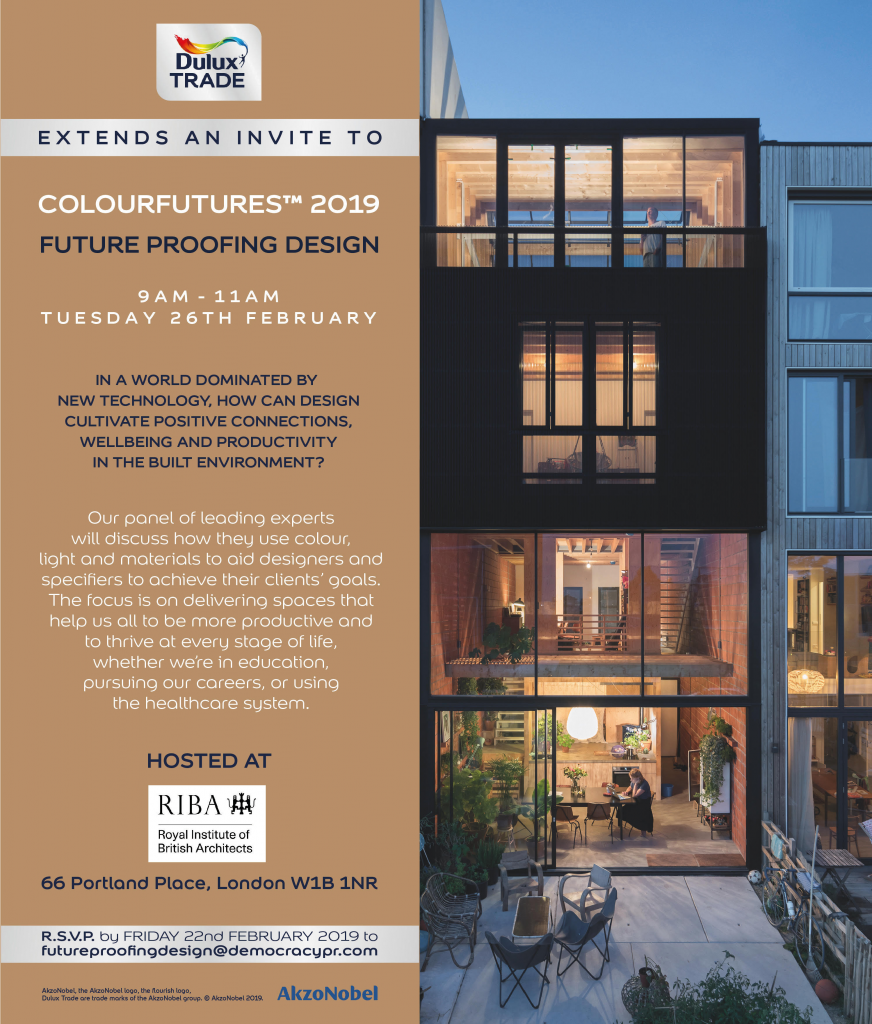 The event is at RIBA, Portland Place, London, on February 26 from 9am-11am. To book a seat, email futureproofingdesign@democracypr.com.