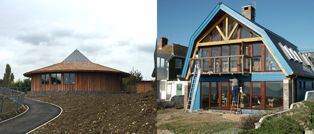 With this ethic flowing through its corporate veins, it was not long before Benfield ATT were involved in commercial, educational, healthcare, leisure, and industrial projects using engineered timber structures. Besides flats and houses it gained a reputation for tackling some of the more intricate and difficult construction challenges – in timber! Examples of this are a dental and health clinic created on a curve and balanced on a single row of piles to meet exacting ground and site conditions in Exeter, the complex curved glulam ‘Armadillo Shell’ roof for a visitor centre near Cardiff, a huge 30m span portal frame for a furniture factory in the wilds of Dorset, the UK’s first amphibious house in Marlow, and a circular crèche for an international ‘cherry picker’ manufacturer in Milton Keynes. As Prof.B (as he has become known) smilingly states, “The things other people shy away from are exactly what we like to get to exercise our skills, experience and capabilities. While we’re very happy to prefabricate and build ‘standard’ houses, if it’s ‘different’ it ‘gets our juices going’.”