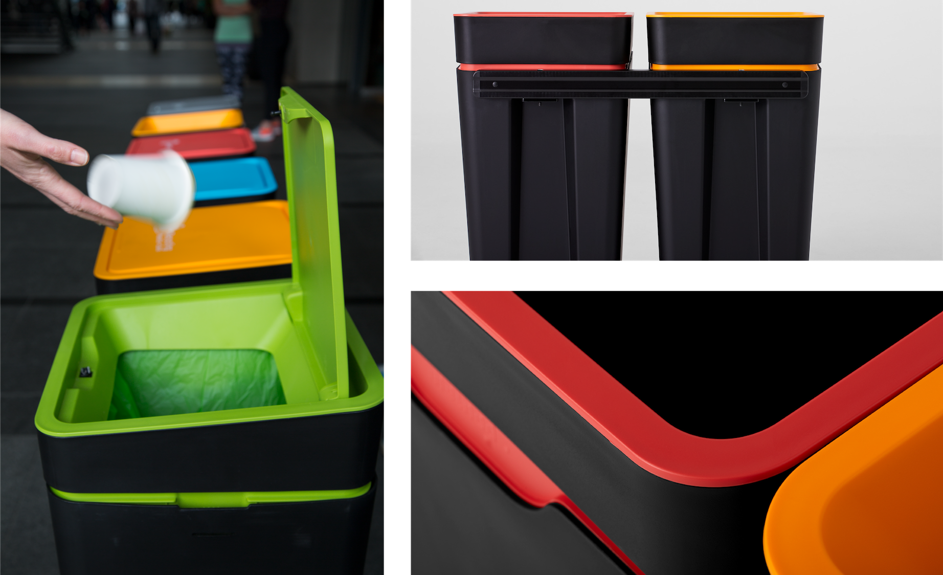 All of this hard work paid off, resulting in the colour-coded and ultimately behaviour-changing Method 60L Office Recycling Bins. Designed for the modern workplace, they connect together to form flexible recycling stations that can be easily adapted to the needs of any building.