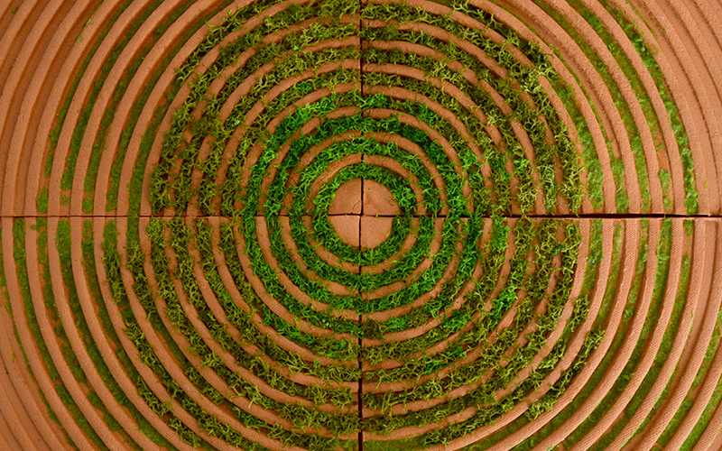 Another guest Poppy Pippin has created a range of terracotta ‘Moss Tiles’, designed to encourage moss growth. Applied in public realm areas the tiles can help absorb carbon dioxide, enhancing the surrounding air quality.