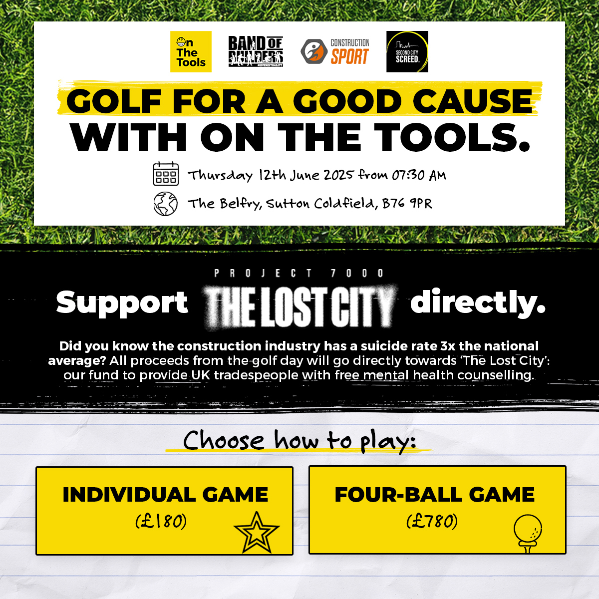 With a 7:30 AM shotgun start on The Belfry’s Derby course, the day will raise funds for The Lost City campaign: a movement that confronts the devastating scale of suicide in the construction industry and provides tradespeople with access to free, life-saving therapy.