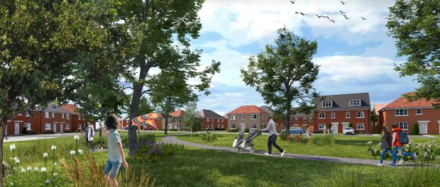 The scheme will provide a mix of two, three and four bedroomed dwellings, designed for sustainability, using a fabric first approach, and high efficiency, low emission solutions throughout. Designed around a central linear green space, which incorporates the site’s sustainable drainage strategy, the layout provides good amenity areas, connections to nature and habitats for wildlife.