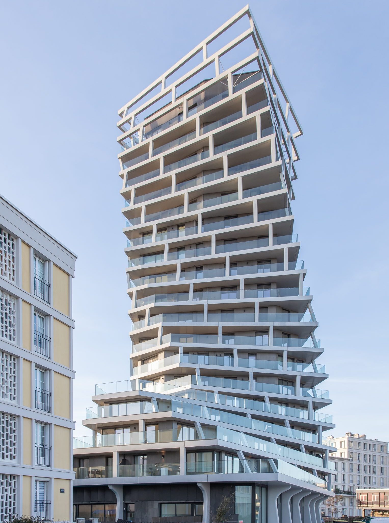 “What an audacious masterpiece! Sogeprom has completed an exceptional residential project designed by Hamonic+Masson & Associés, a landmark in terms of design and construction, elegant, efficient and … complex to build. The building’s resolutely avant-garde architecture blends masterfully into the architecture of Le Havre. “Building the city on top of the city”, by replacing urban expansion with vertical density, makes a major contribution to the desartificialisation of land, and this programme is a concrete and living testimony to the promotion of environmental and social values.”