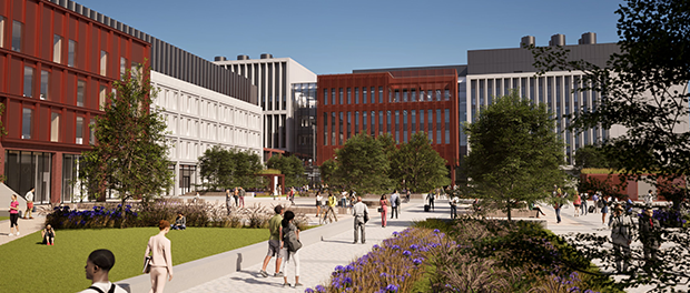 The new plans will revitalise the heart of the University campus, enhance connectivity and improve collaboration between departments. Guided by the University’s sustainability aspirations, the STEM Connect Programme will see the creation of new, low carbon campus buildings, including a new university green – a high-quality public amenity space. The new green will create opportunities for community engagement, events and enhance biodiversity.