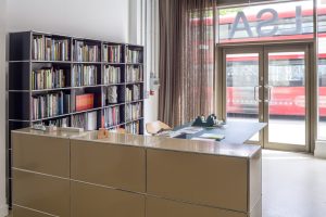 When USM were recently approached to donate furniture for the new Mare Street building, they were more than happy to help. A large bookcase in steel blue dominates the LSA library and houses books donated by various practices, whilst an adjacent storage cabinet in beige completes the space. The clean lines of the furniture compliment the environment and the longevity in the design of the iconic furniture speaks for itself in terms of sustainability; the modular nature of the furniture means that both the bookcase and the cabinet can be reconfigured if the needs of the library change. Nothing needs to be thrown away, as thanks to the retrospective compatibility of USM products, previously purchased parts can be combined with newly purchased parts.