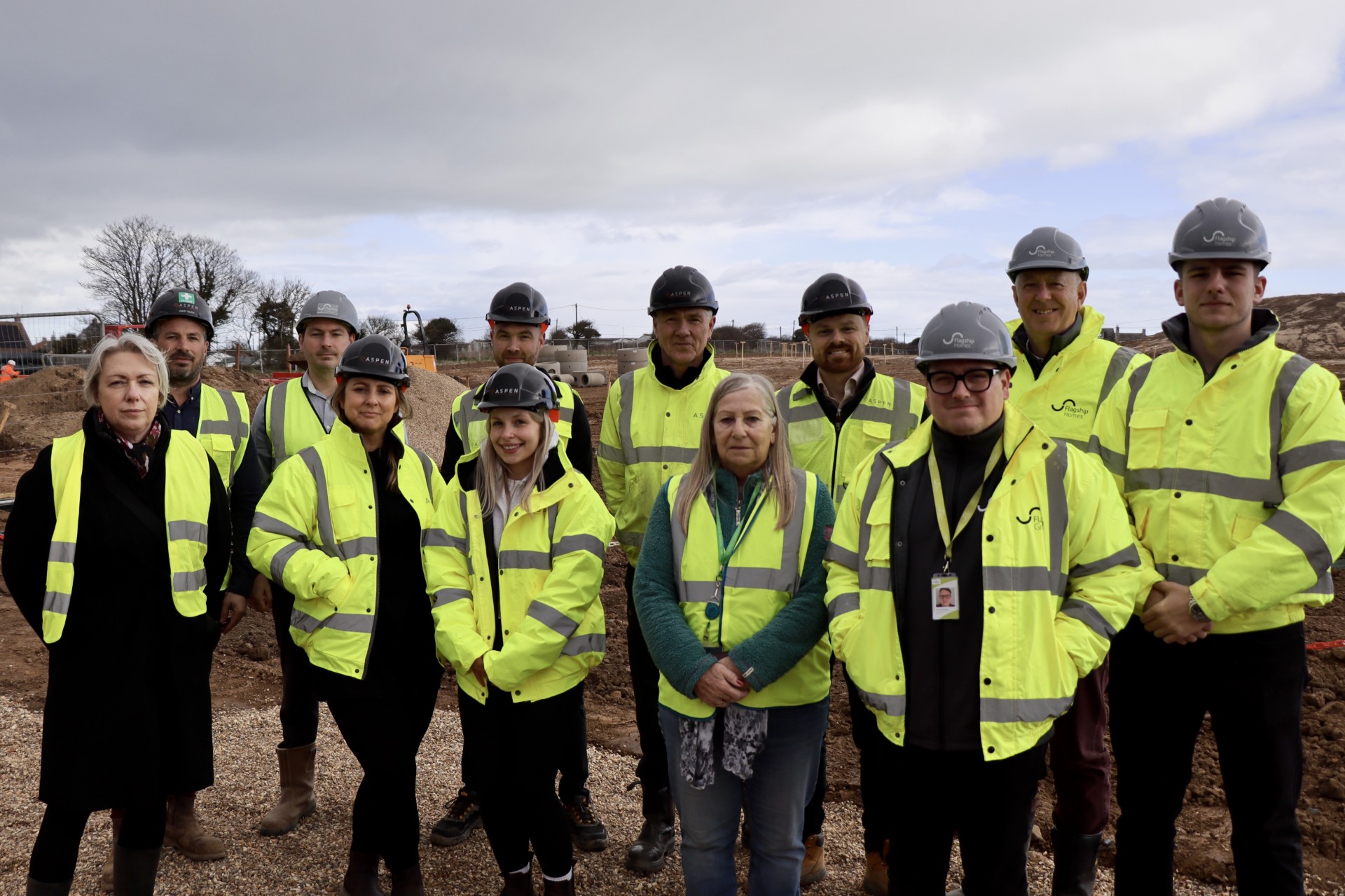 Representatives from Flagship Homes, Aspen Build and North Norfolk District Council at the St Andrew’s Meadow site in Bacton, north Norfolk. Credit Flagship.