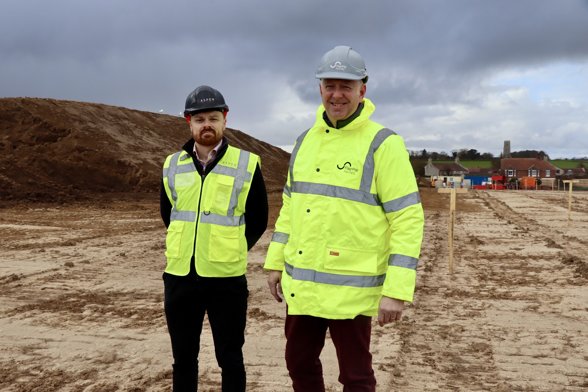 Aspen Build Operations Director James Betts, left, and Flagship Homes managing director Tony Tann at St Andrew’s Meadow, Bacton. Credit Flagship.